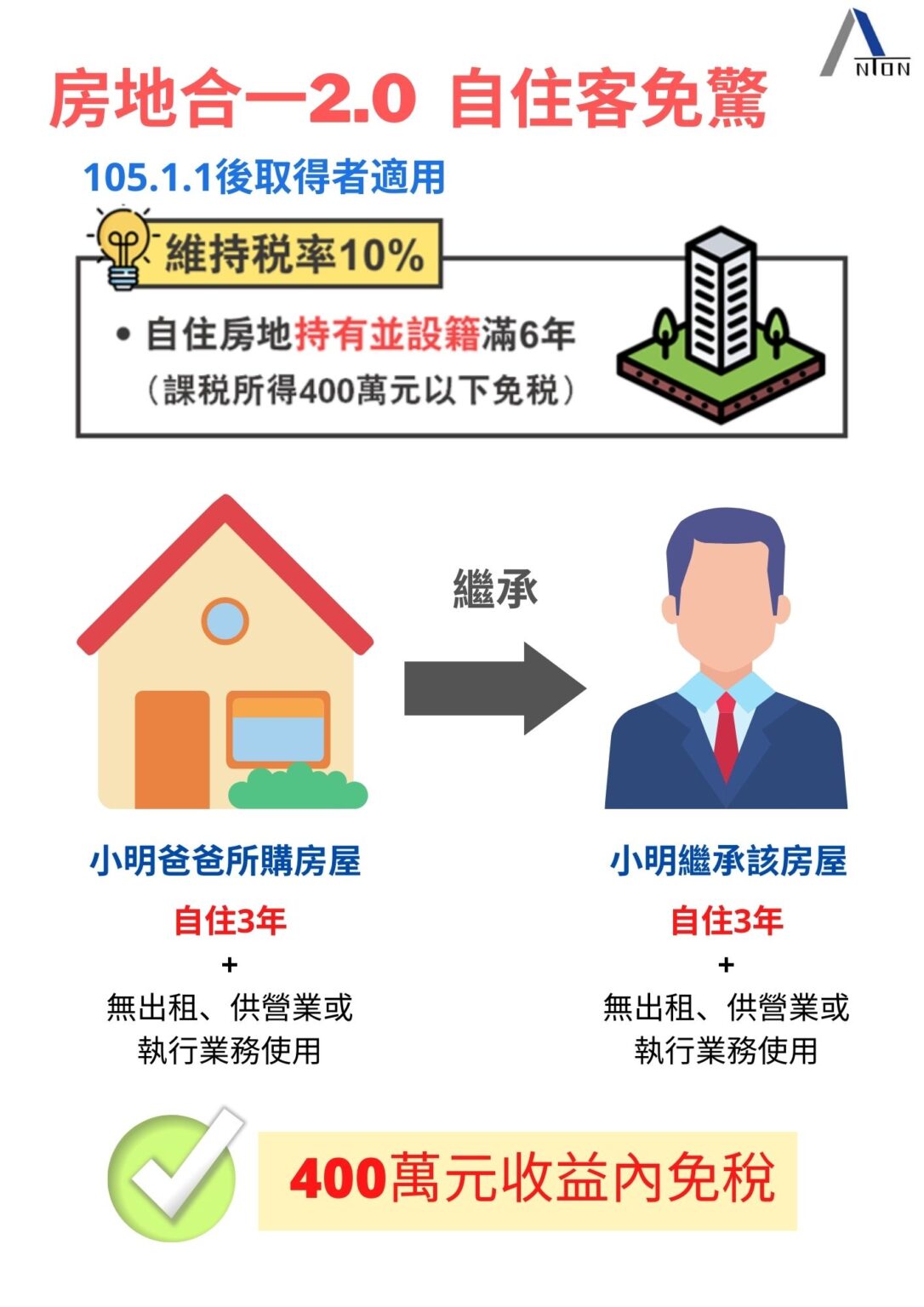 三、2.0有優惠稅率?我是繼承取得而且一直以來都是自住房地有辦法免稅?