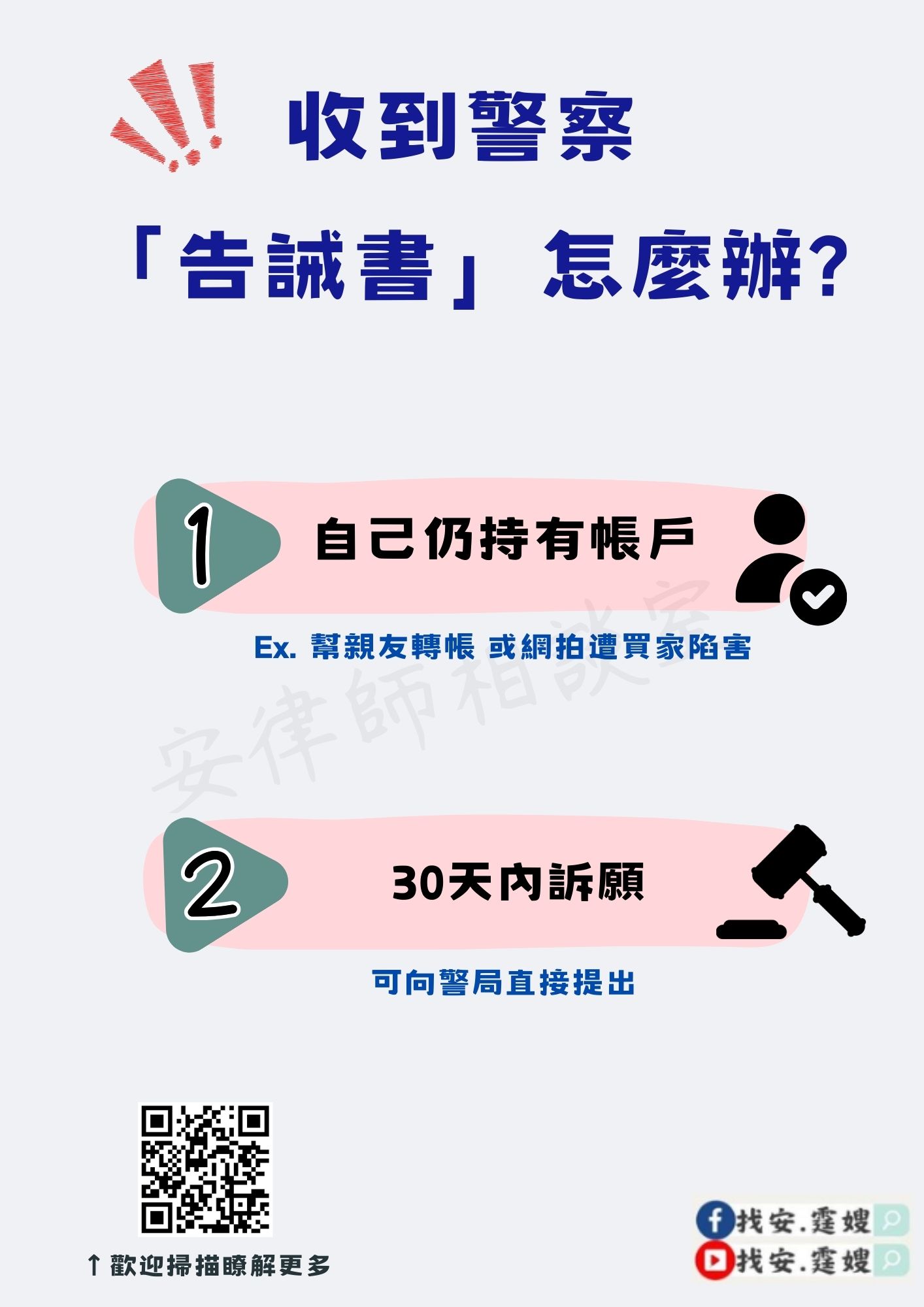 收到告誡書後,應第一時間詳細確認內容,包括告誡處分的理由、發出機關、處分的具體影響等。例如,告誡處分是否因轉借帳戶而起,或是否與特定詐騙案件有關,清楚了解這些資訊後,也可一併清楚後續救濟的策略。此外,也應確認該通知是否來自正式的警察機關,以免遭受詐騙。若對內容存疑,可直接聯繫告誡書上的機關詢問細節。
