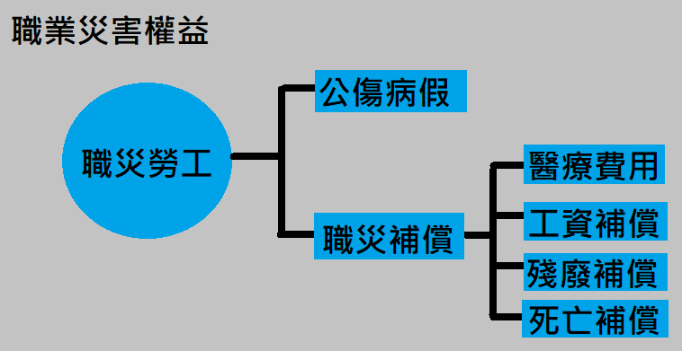 2.雇主須負的職災補償責任,包括醫療費用補償、工資補償、殘廢或死亡給付。