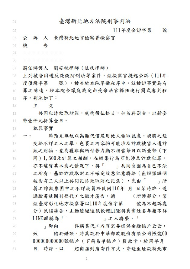 • 【誤當人頭觸洗錢,律師爭取拘役50日】#台北刑事辯護律師 #法律事務所推薦